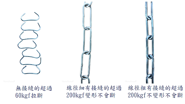 測試的結果發現除了有裂縫跟無縫會影響斷裂&拉力,另外線徑較粗比較不會變形,如下圖