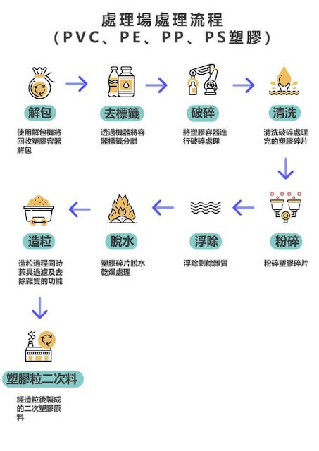 處理場處理流程圖(PVC、PE、PP、PS塑膠)